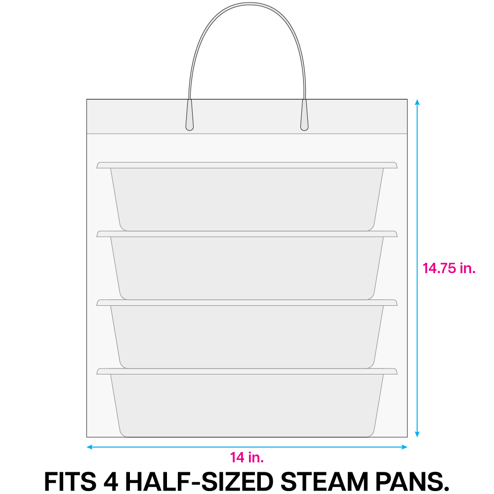 - Able to hold roasters with dome and other larger/heavier take out items.