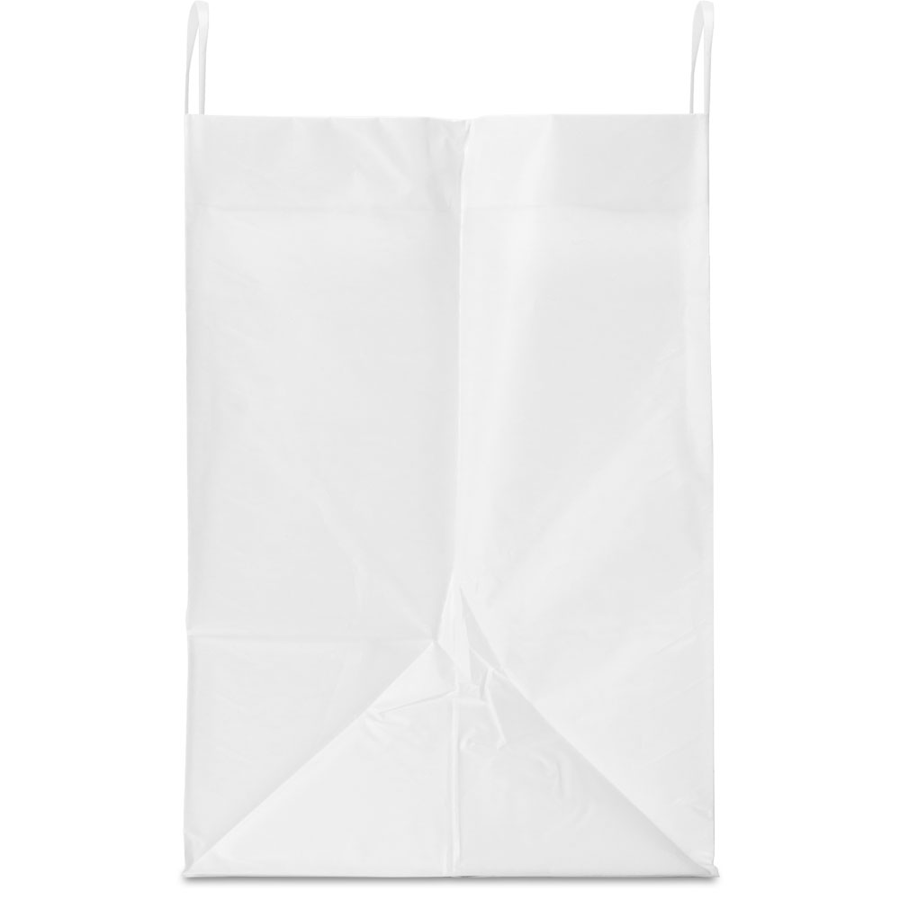 - Flat bottom with sturdy cardboard insert allows for take bag to stand alone and easy removal and loading.
