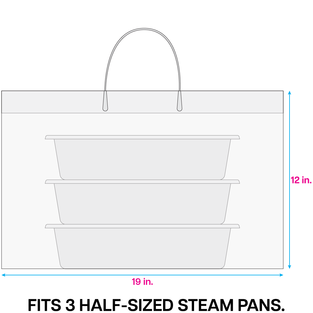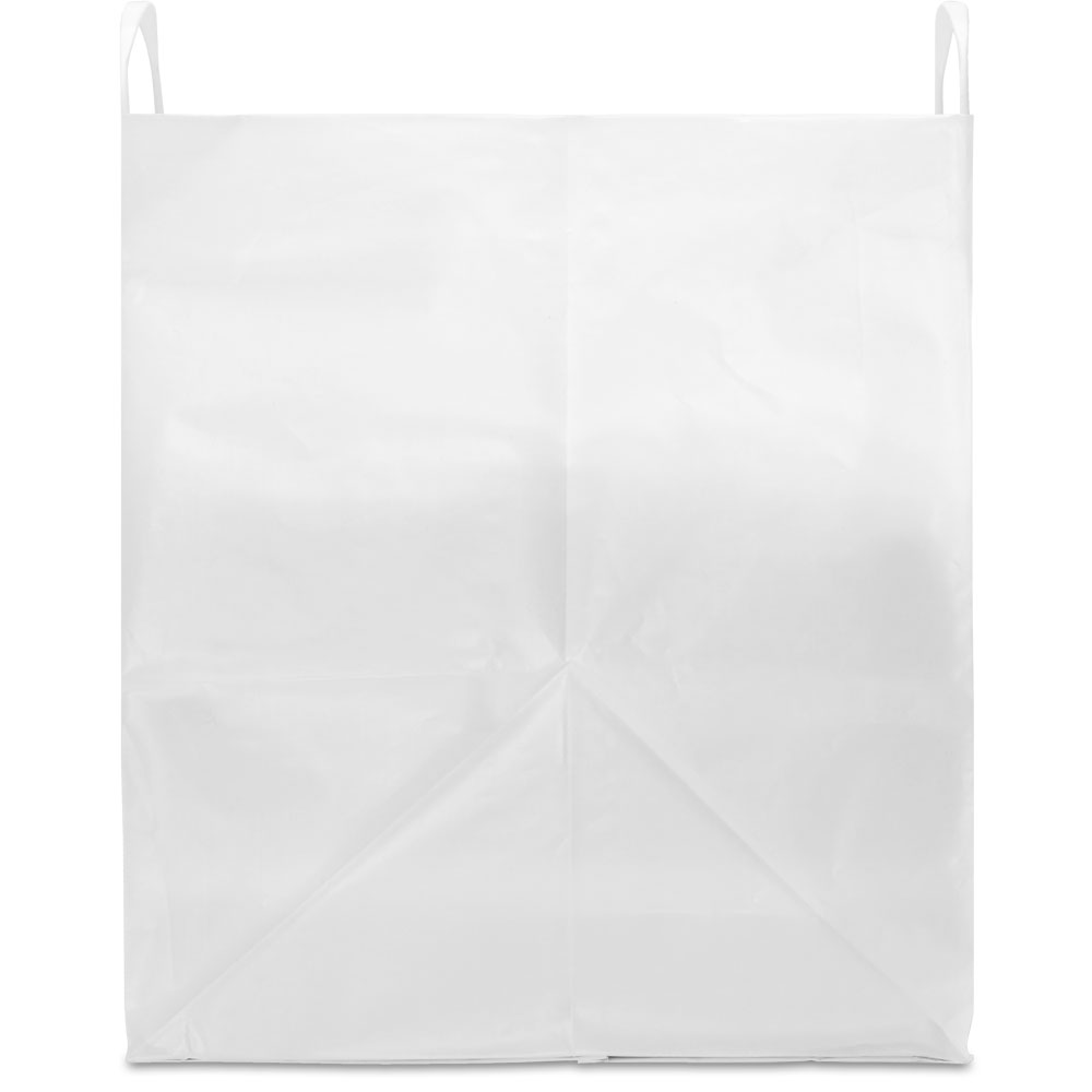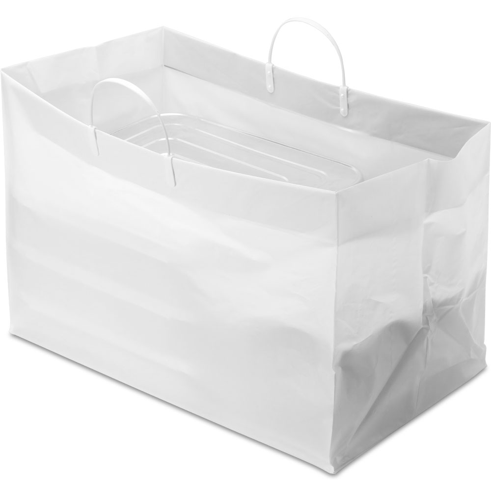 - Flat bottom with sturdy cardboard insert allows for bag to stand alone and for easy removal and loading