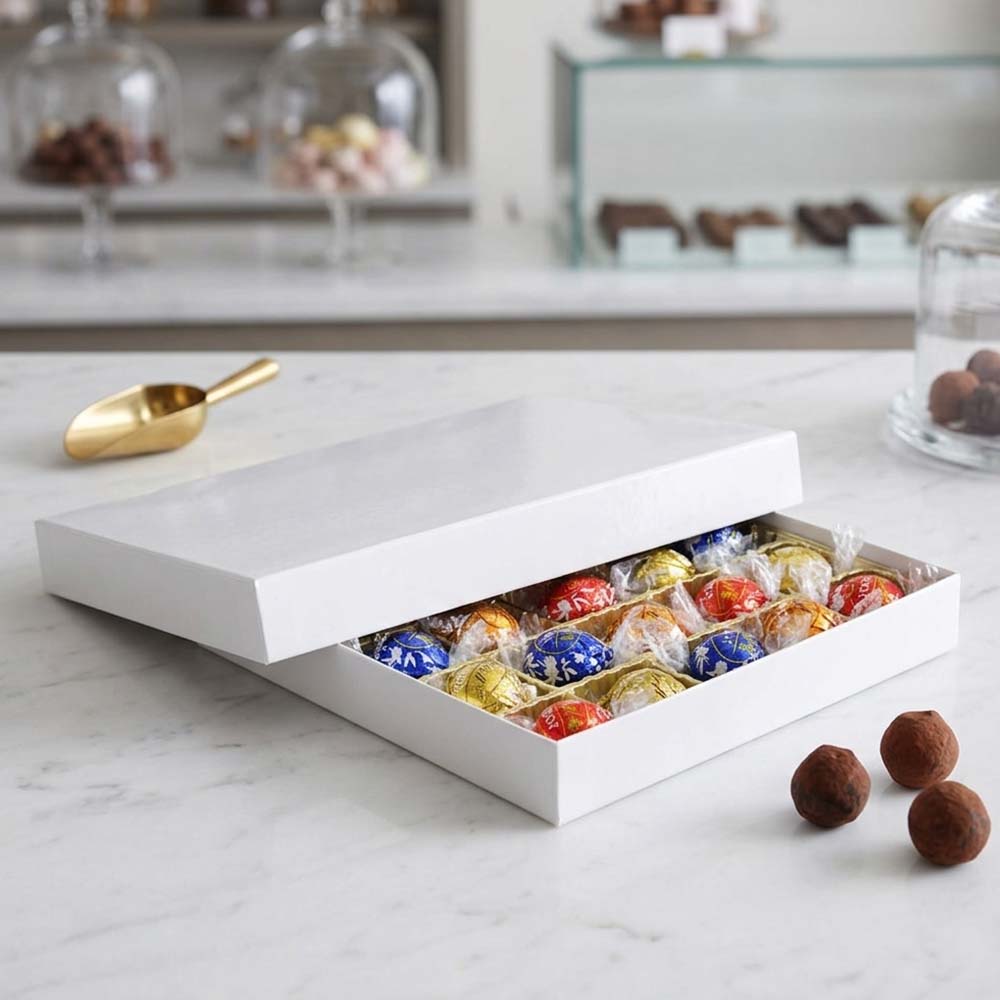 Rigid construction of both base and lid add security to your product. Elegant look for very high perceived quality. Good for large candy applications and depending on the insert can hold 2-30 individual candies.