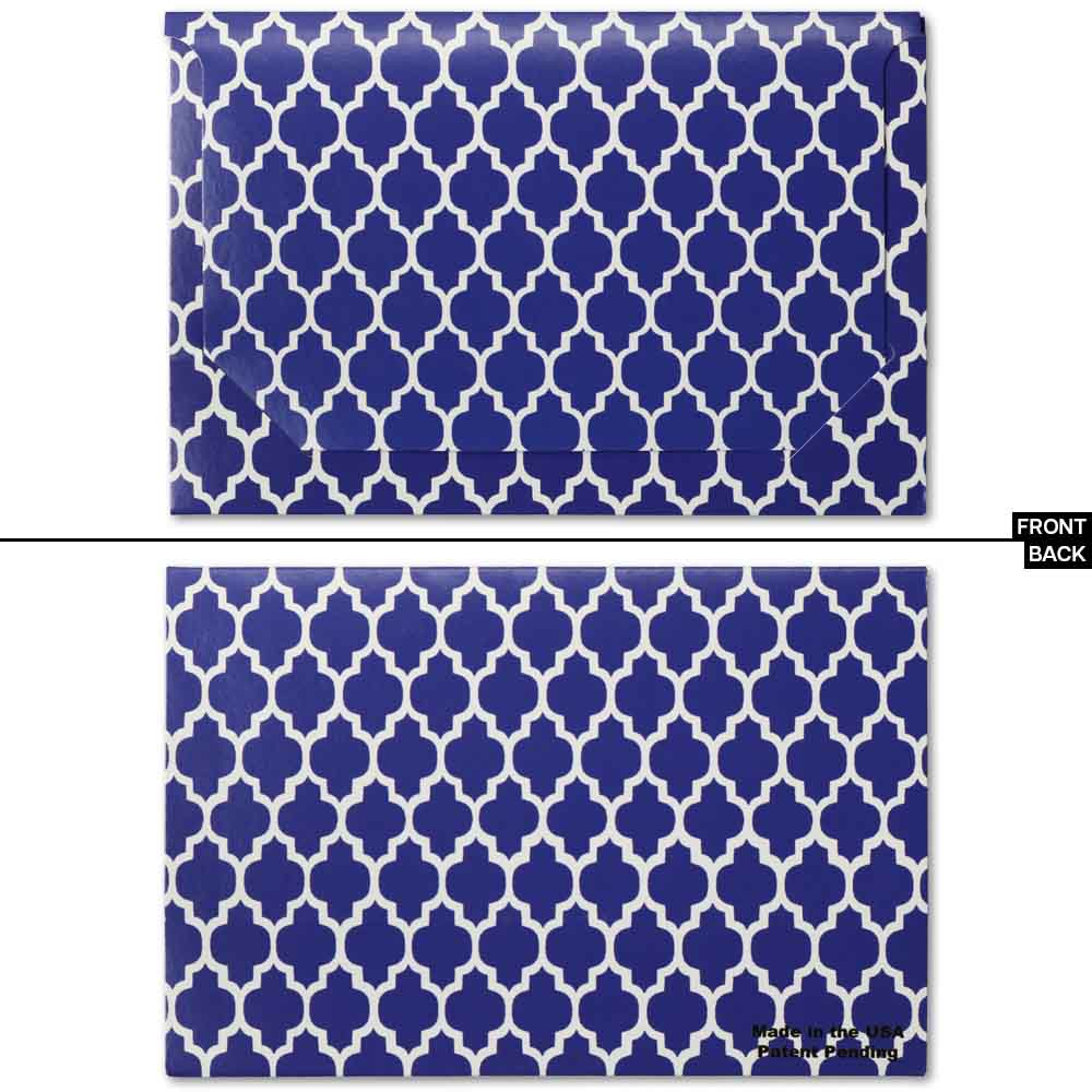 This gift card folder features a distinctive geo nautical design that helps businesses elevate the presentation of gift cards at checkout. The glossy cardstock construction unfolds into a freestanding display that showcases the card upright while providing a writing area for a message or amount. It is a simple way to turn a gift card into a more memorable gift.