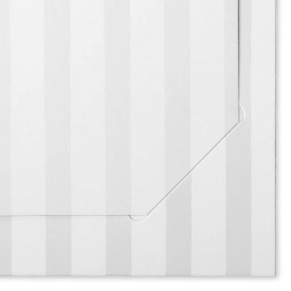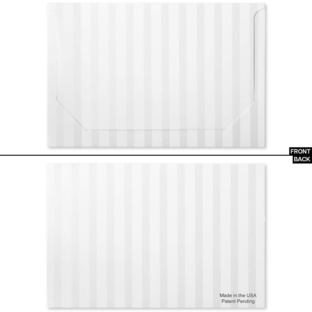 This gift card folder features a distinctive pearl stripe design that helps businesses elevate the presentation of gift cards at checkout. The glossy cardstock construction unfolds into a freestanding display that showcases the card upright while providing a writing area for a message or amount. It is a simple way to turn a gift card into a more memorable gift.