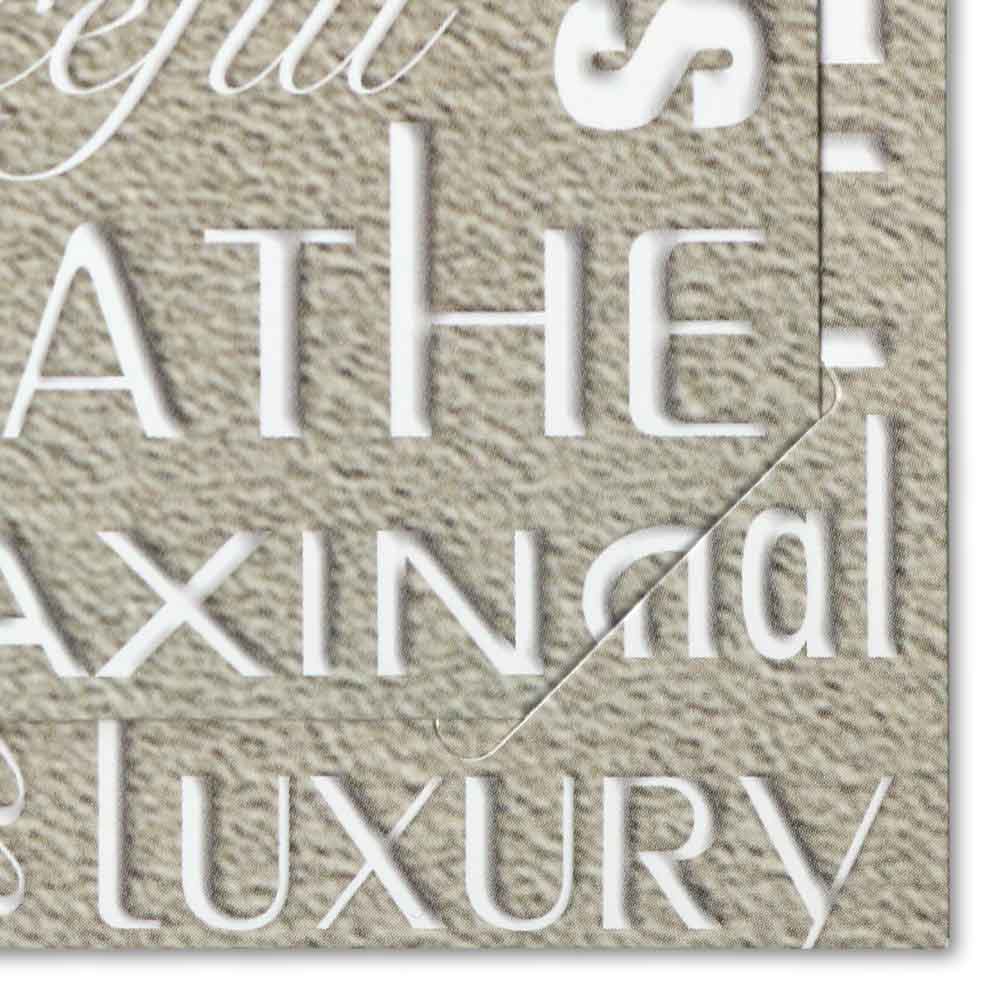 This gift card folder features a distinctive spa design that helps businesses elevate the presentation of gift cards at checkout. The glossy cardstock construction unfolds into a freestanding display that showcases the card upright while providing a writing area for a message or amount. It is a simple way to turn a gift card into a more memorable gift.