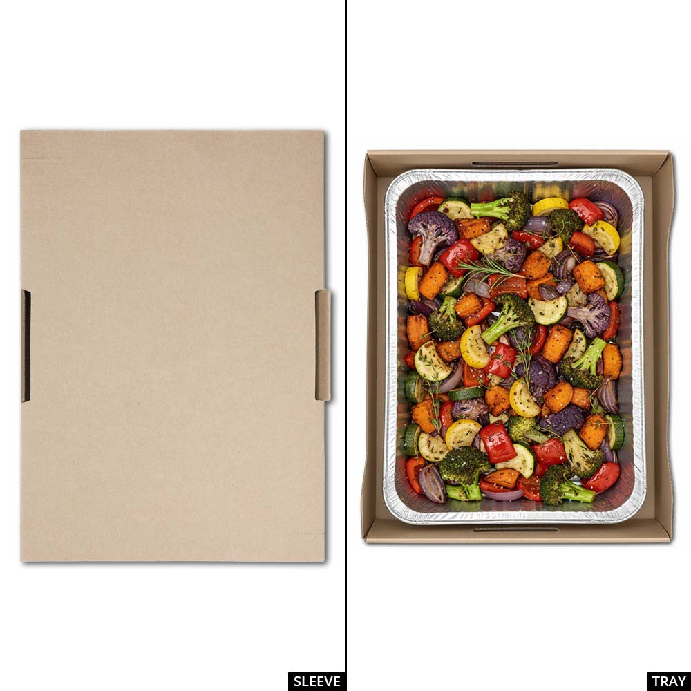 - Durable corrugated 2-piece tray and cover