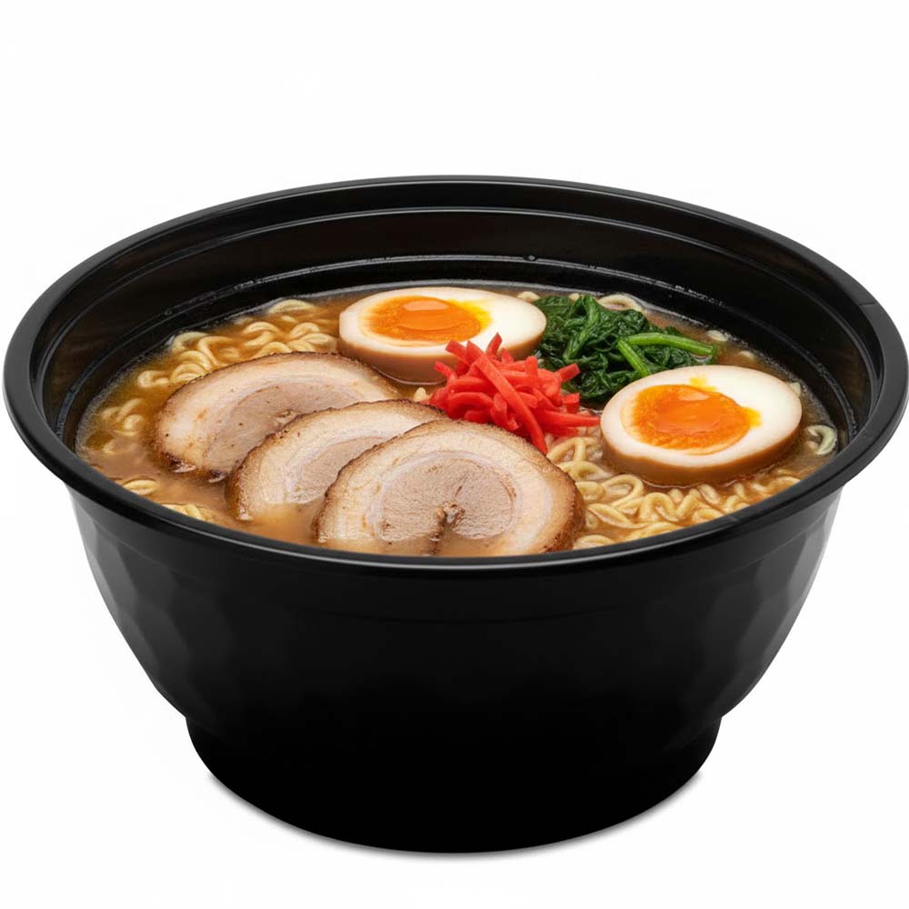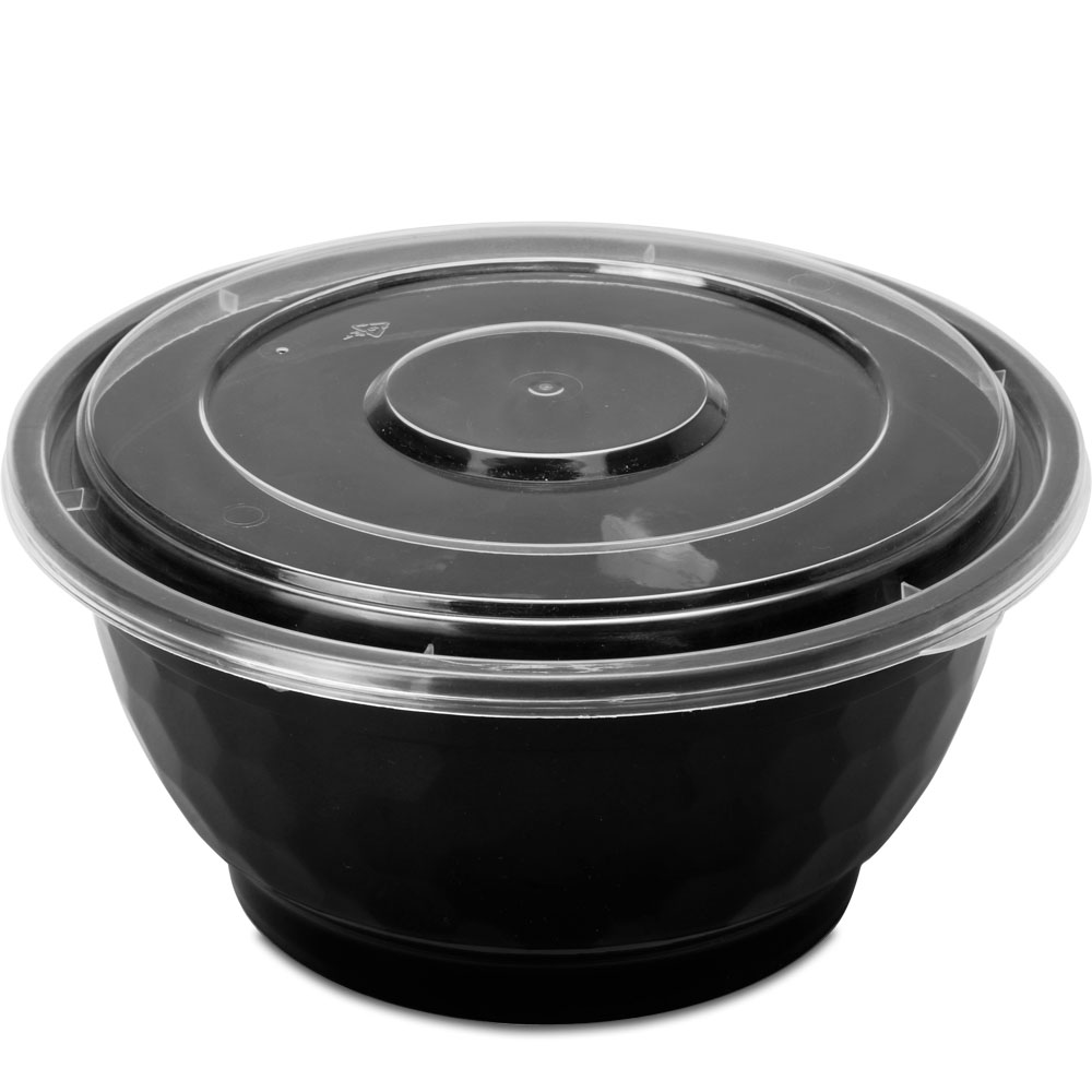 42 oz. Black Round Plastic Noodle Bowls w. Lid