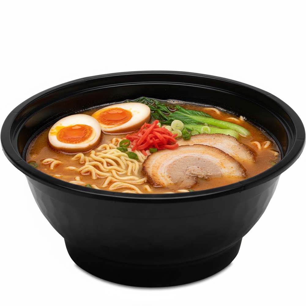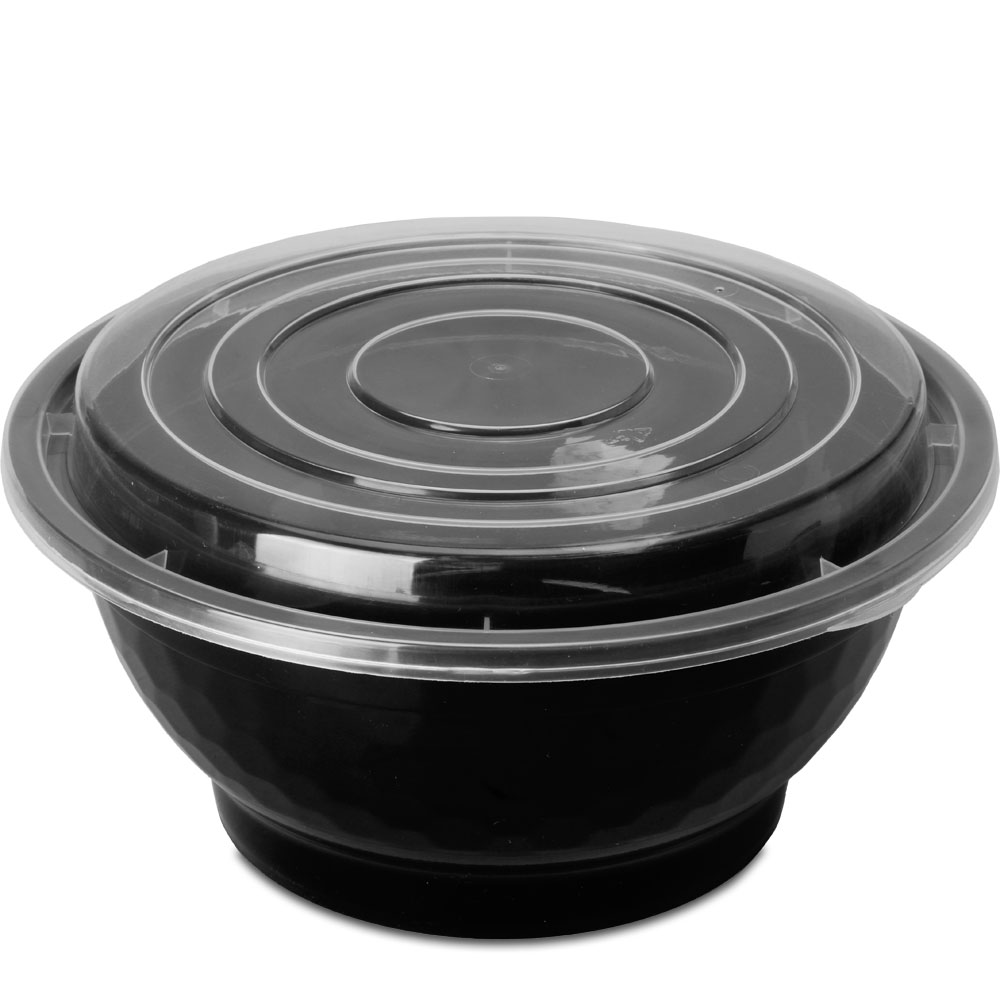 50 oz. Black Round Plastic Noodle Bowls w. Lid