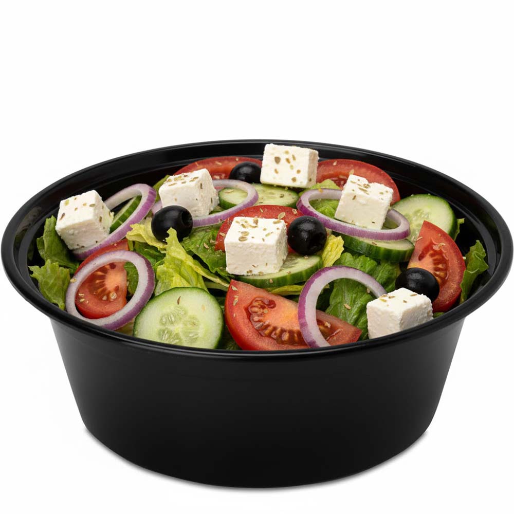 40 oz. Round Plastic Food Container - Black Base w. Clear Lid