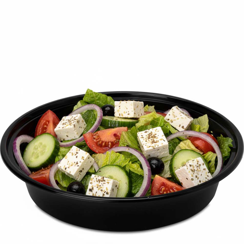 48 oz. Round Plastic Food Container - Black Base w. Clear Lid
