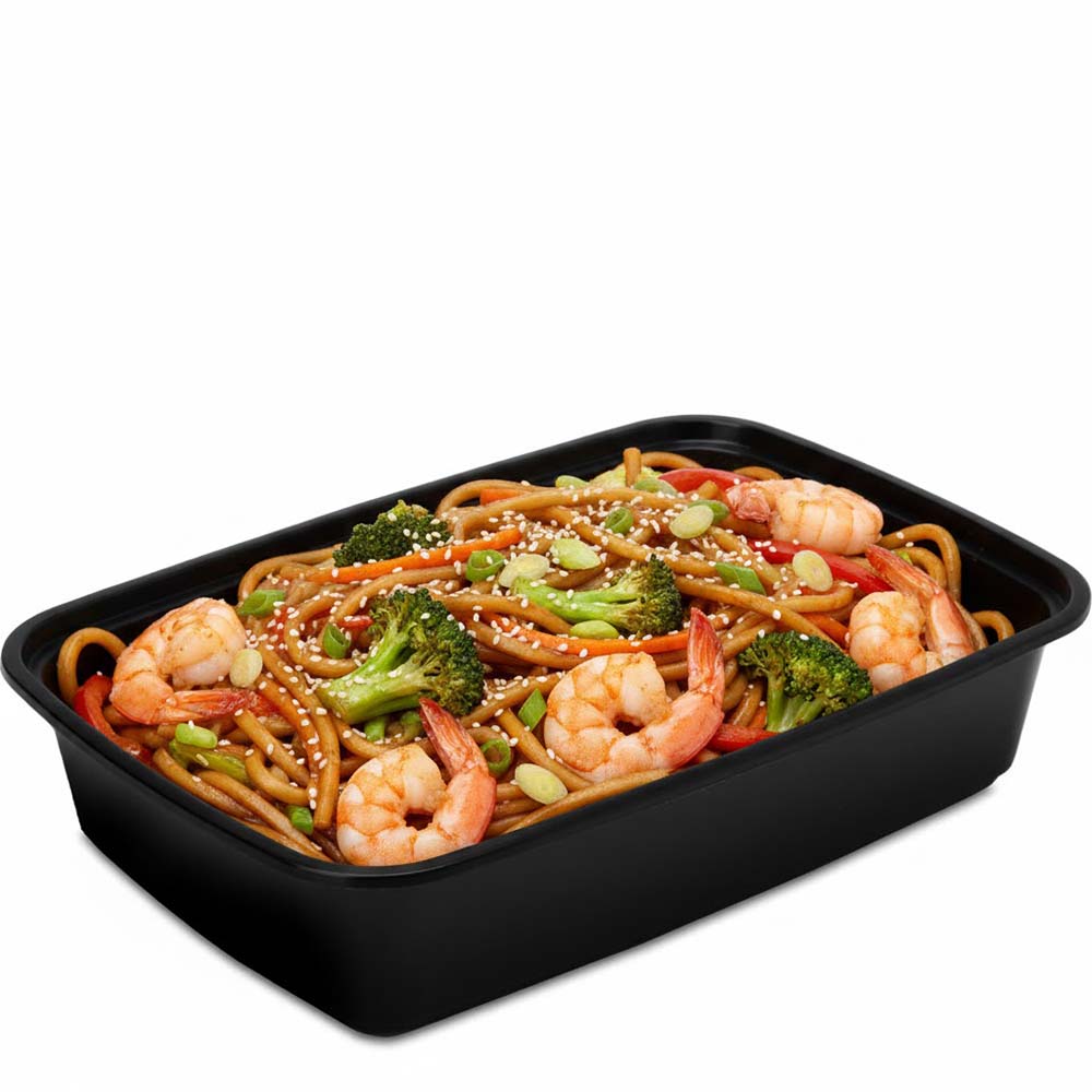 38 oz. Black Rectangular Microwaveable Food Container w. Lid