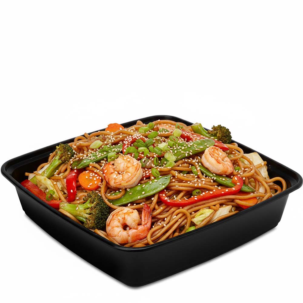 Square microwaveable plastic food containers with lids provide an upscale container to preserve takeout food or frozen food with the ability to be reused!