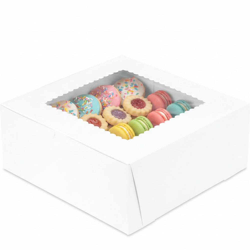 12 x 12 x 5 White Window Bakery Boxes (with Lock Corner)