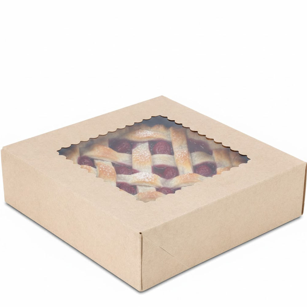 9 x 9 x 2.5" Premium Semi-Automatic Brown Kraft Pie / Bakery Boxes with Window