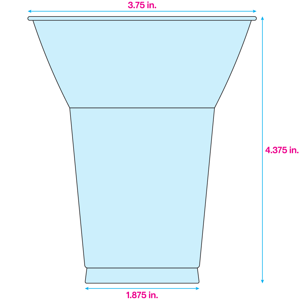 - Size: 3-3/4" top dia., 1-7/8" bottom dia., 4-3/8" high