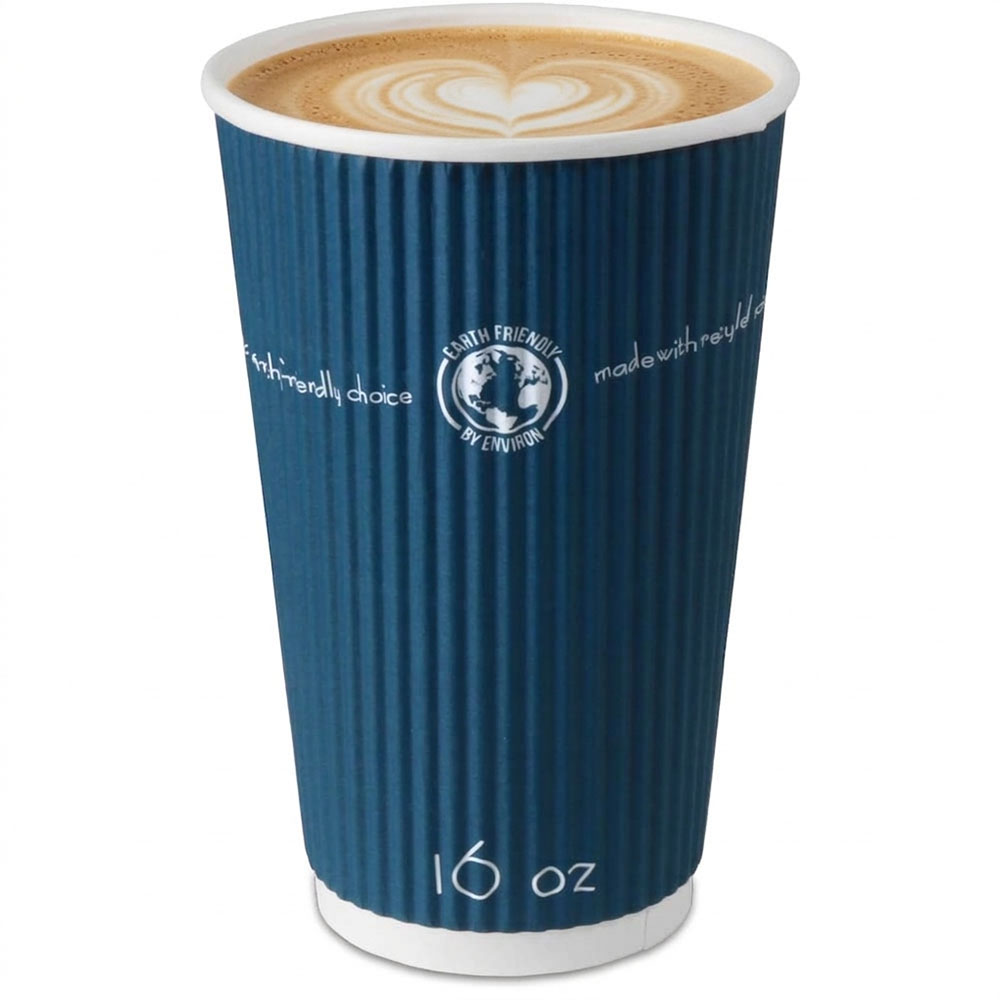 Blue Ripple Paper Coffee Cups - 16 oz.