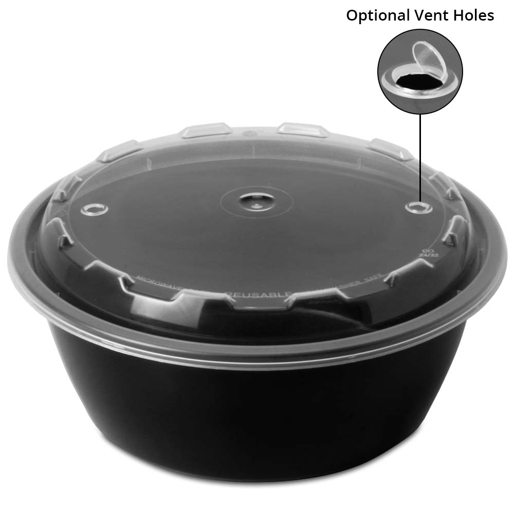 32 oz. Round Plastic Vent-able Food Container - Black Base / Clear Lid