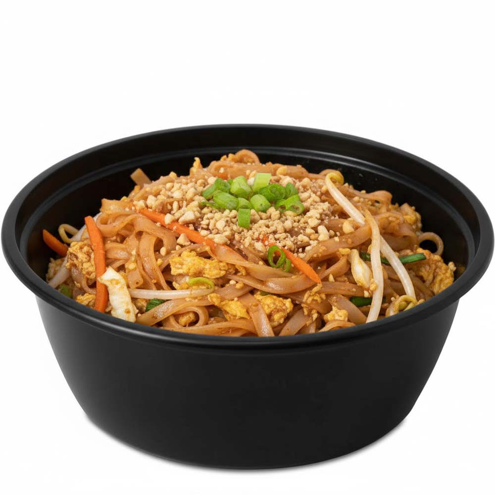 32 oz. Round Plastic Food Container - Black Base / Clear Lid