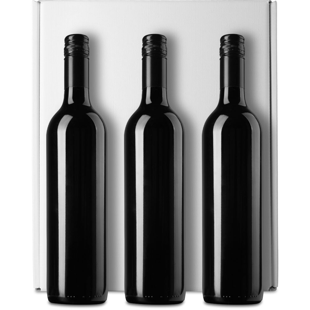 - Three Bottle presentation style gift box with insert for holding bottle necks.