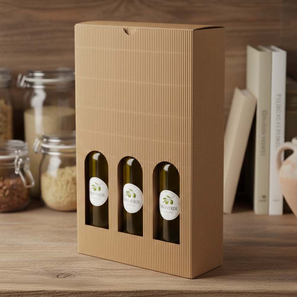 Olive Oil Gift Box - Natural Textured Rib Grande 3 - Bottle (50/case)