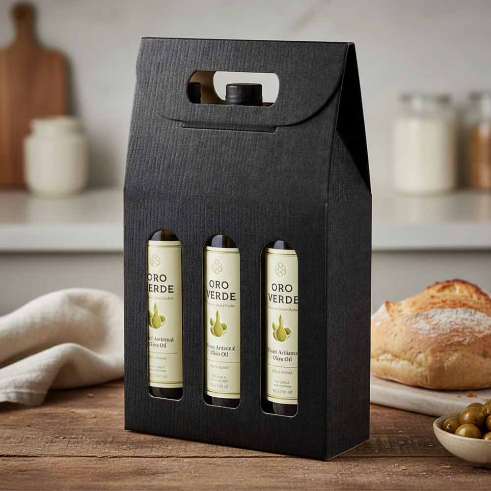 Olive Oil Gift Box - Nero Black Embossed Tall 3 - Bottle (50/case)