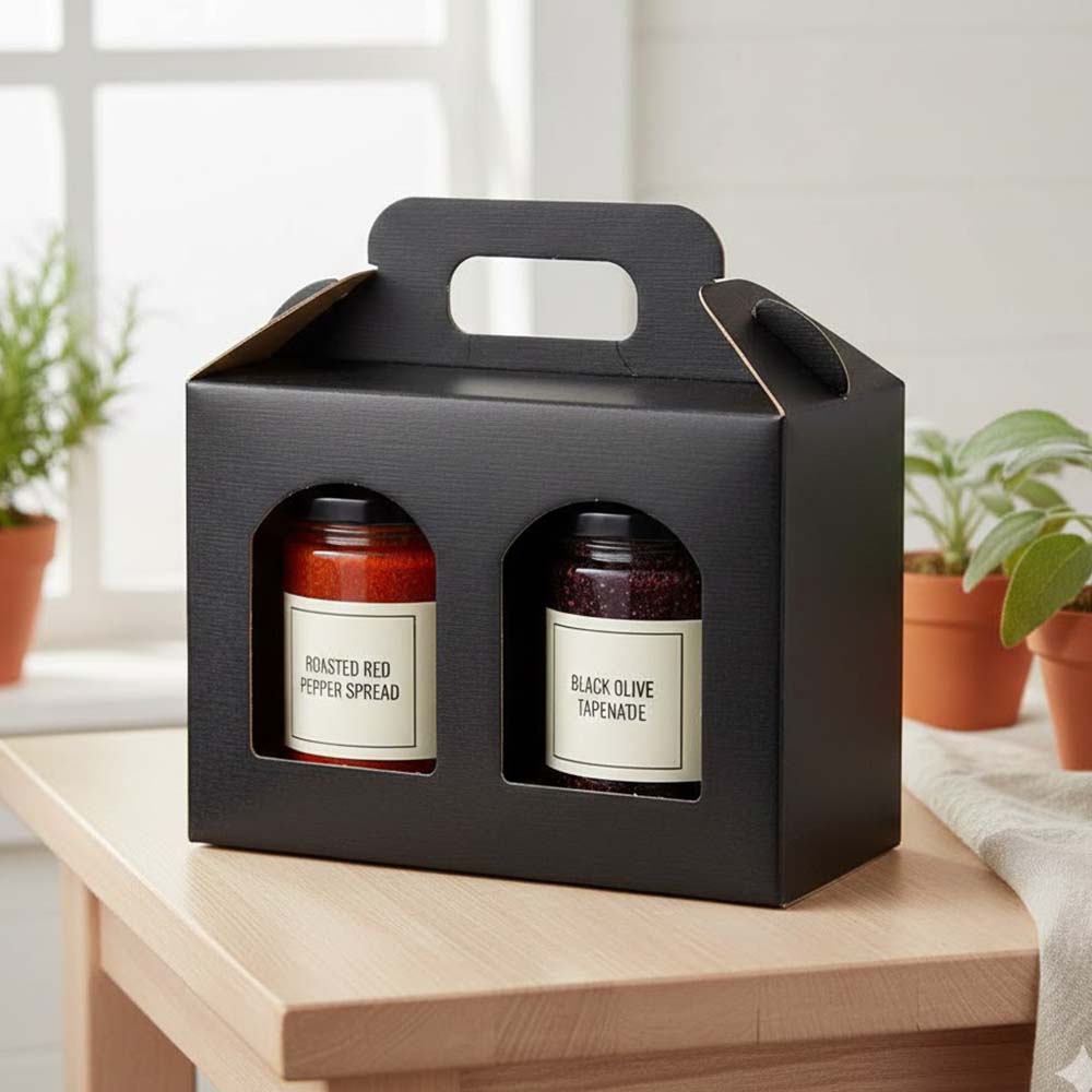 Jar Gift Box - Nero Black Linen Window 2 - Jar Carrier