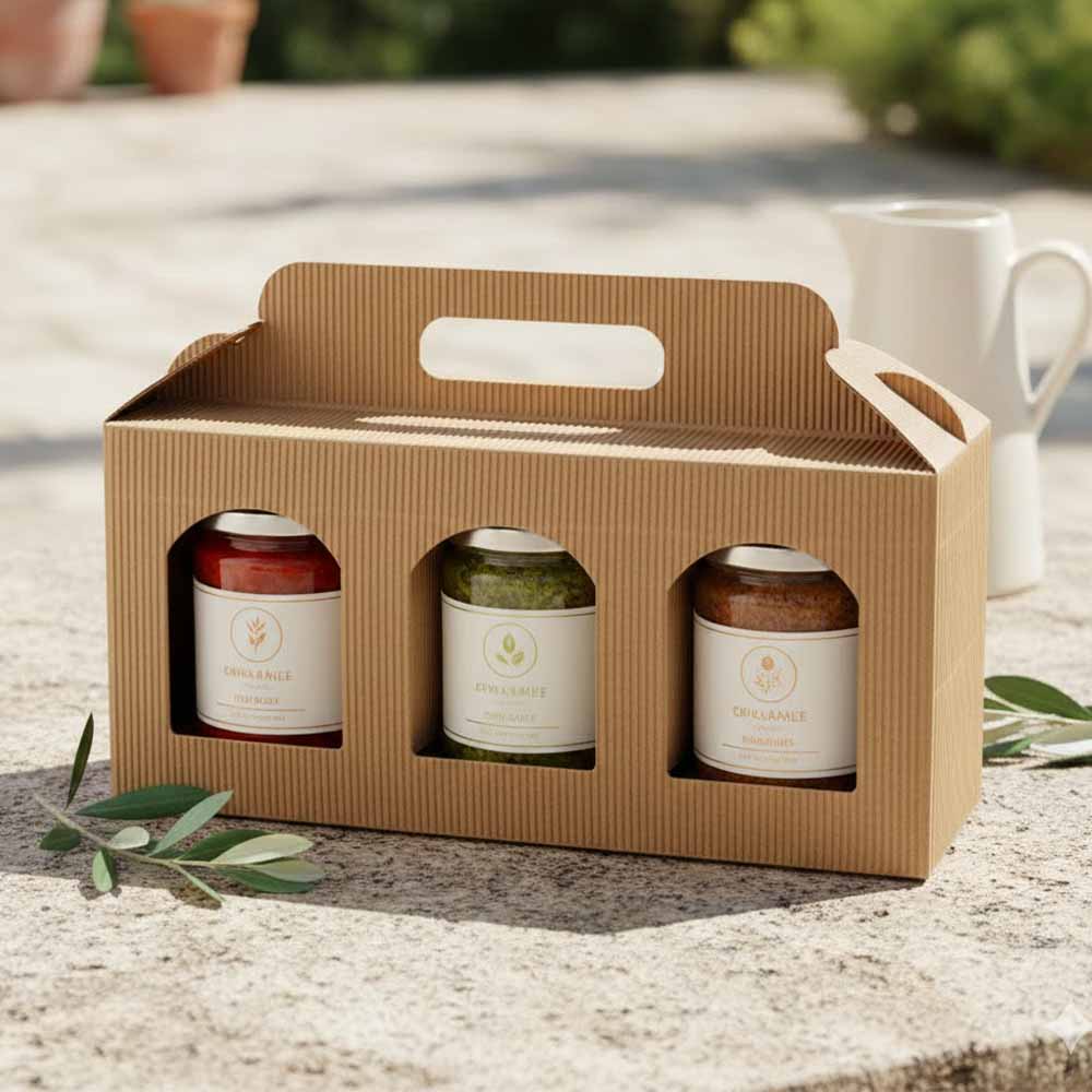 Jar Gift Box - Natural Textured Rib Window 3 - Jar Carrier