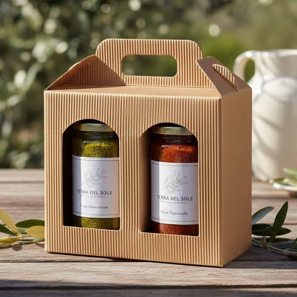 Jar Gift Box - Natural Textured Rib Tall Window 2 - Jar Carrier