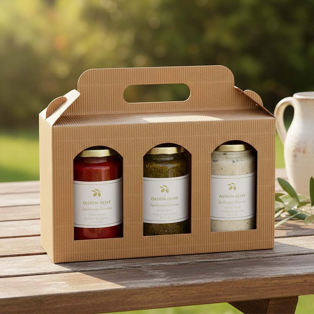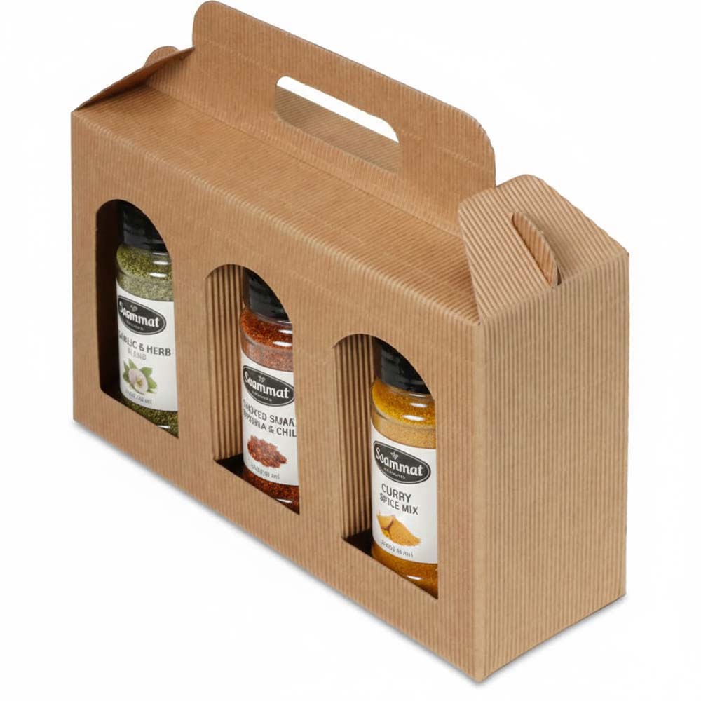 Jar Gift Box - Natural Textured Rib Tall Window 3 - Jar Carrier