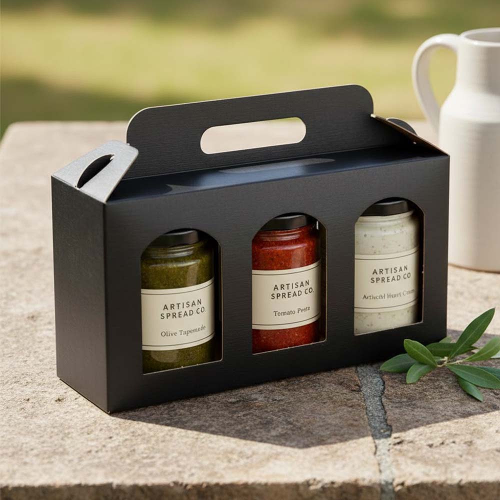 Jar Gift Box - Nero Black Linen Tall Window 3 - Jar Carrier