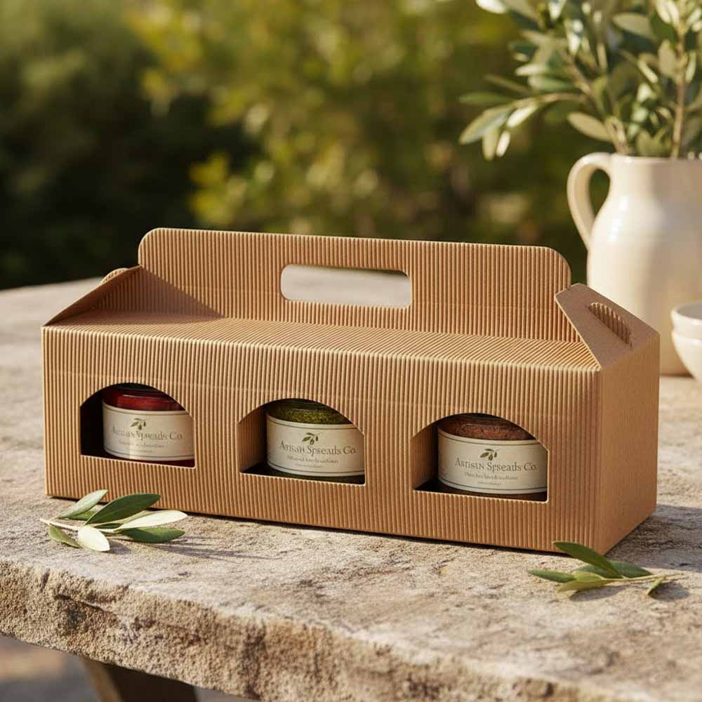 Jar Gift Box - Natural Textured Rib Squat Window 3 - Jar Carrier