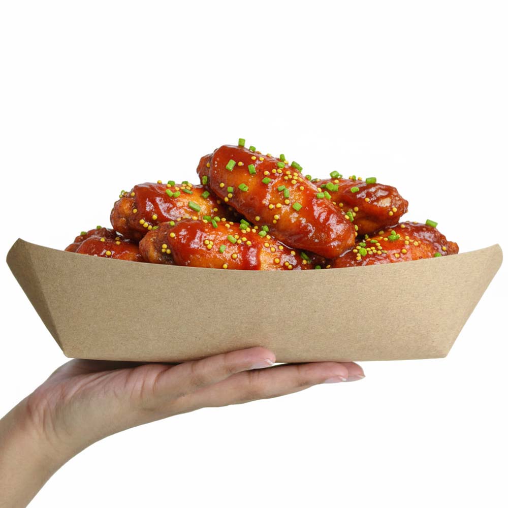These kraft trays are eco friendly and economical as a take out container for FULL MEAL WITH SIDES, BIG SANDWICHES, RIBS, CHICKEN and other casual foods.