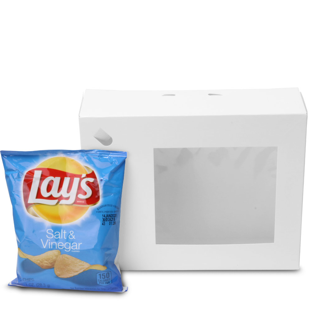 - This large paperboard lunch box can accommodate a sandwich, apple, bag of chips and can of soda