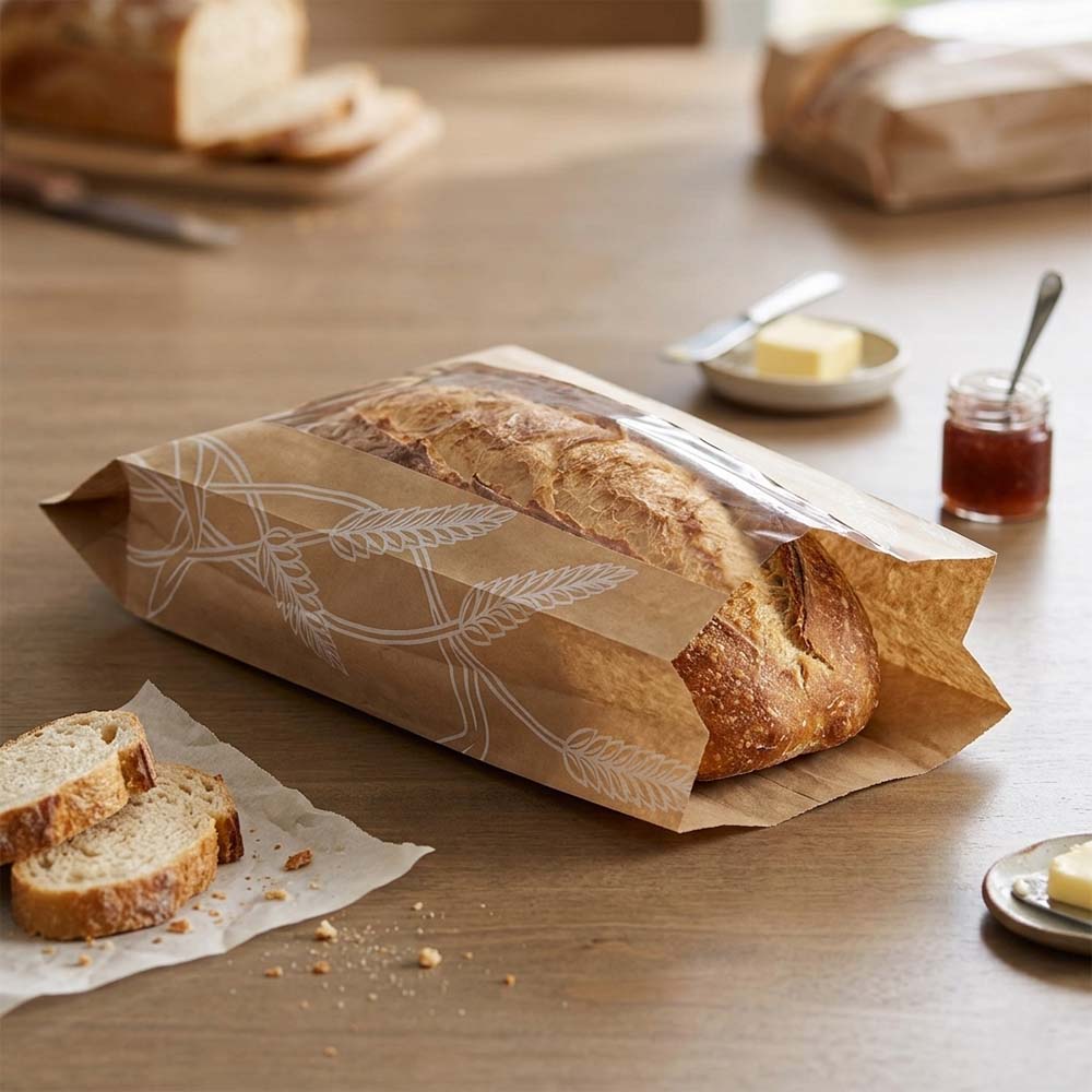 Winter Wheat Design Paper Bread Bags w/ PLA Window - 8.5 x 3.25 x 14"