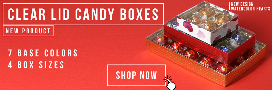 Our wholesale candy boxes are perfect for shops that need to provide high quality boxes that catch eyes and SELL products. The candy boxes come in two different styles:folding top boxes and the classic, two-part rigid boxes. Choose from a variety of sizes and colors. Buy online and save more when you buy more with discount volume pricing.